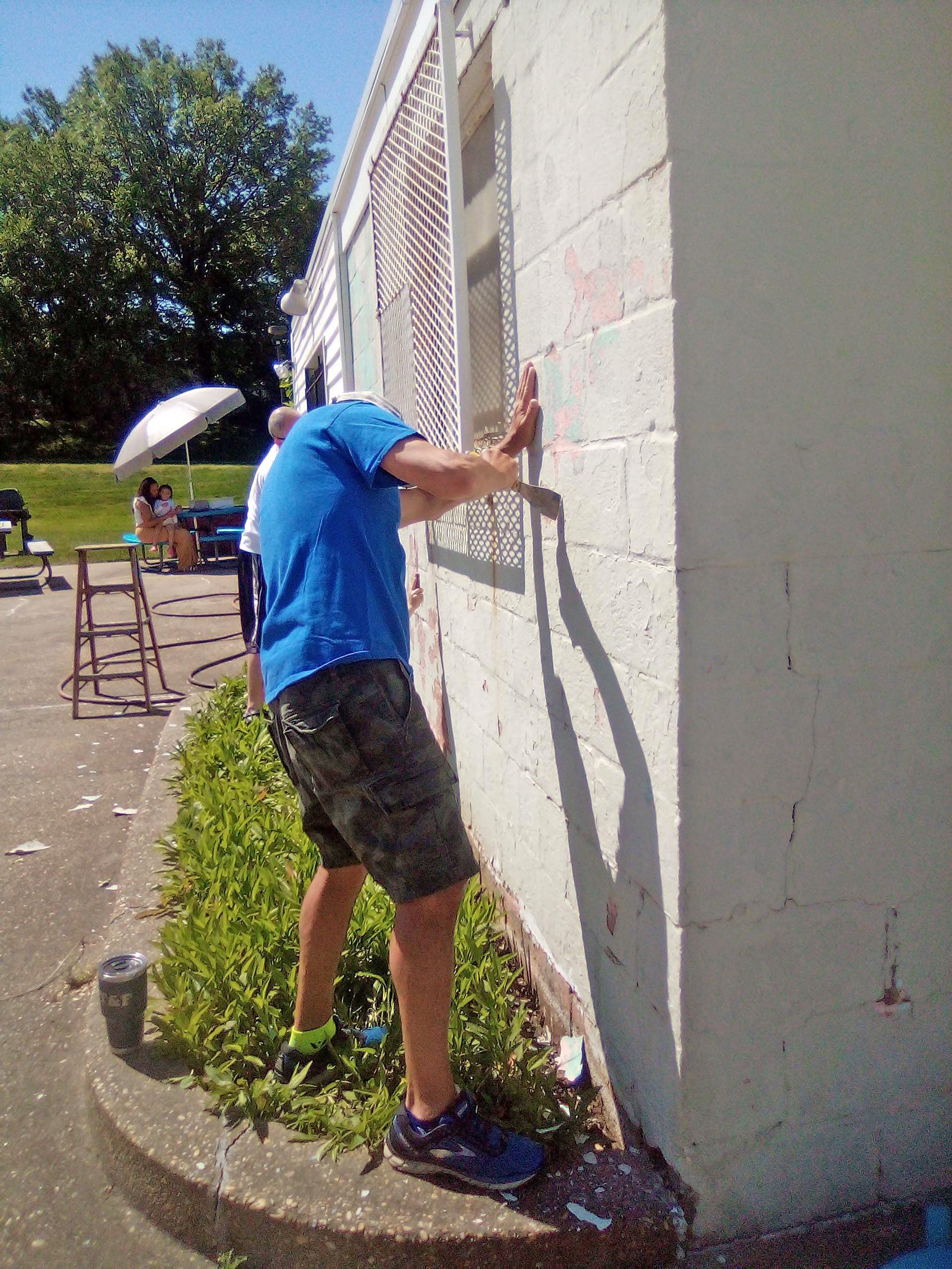 Prepping the utility building for paint